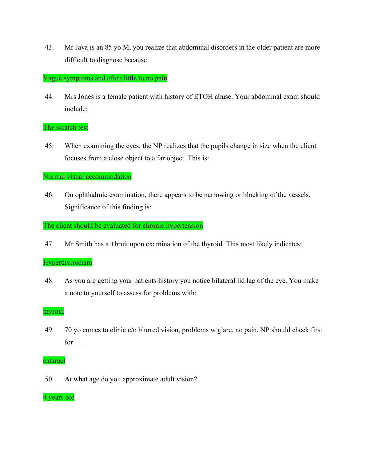 Advanced Health Assessment Final Exam 2023/2024. GRADED A+