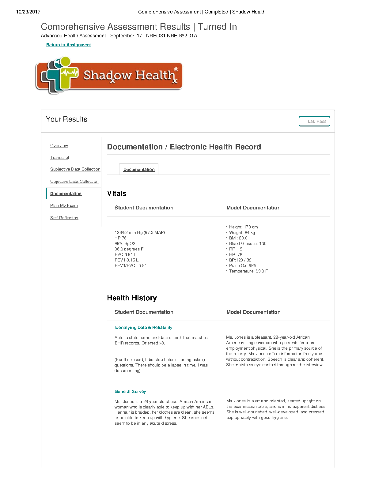 Comprehensive Assessment Results Turned In Advanced Health Assessment