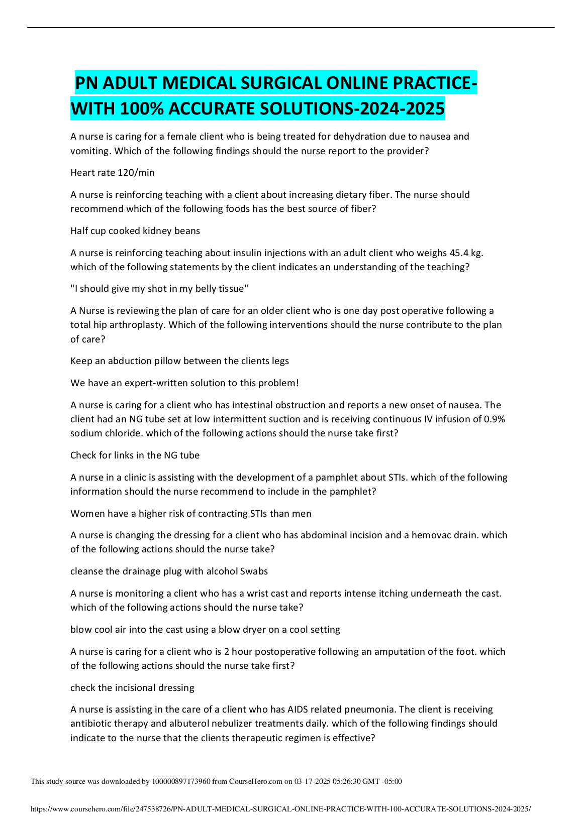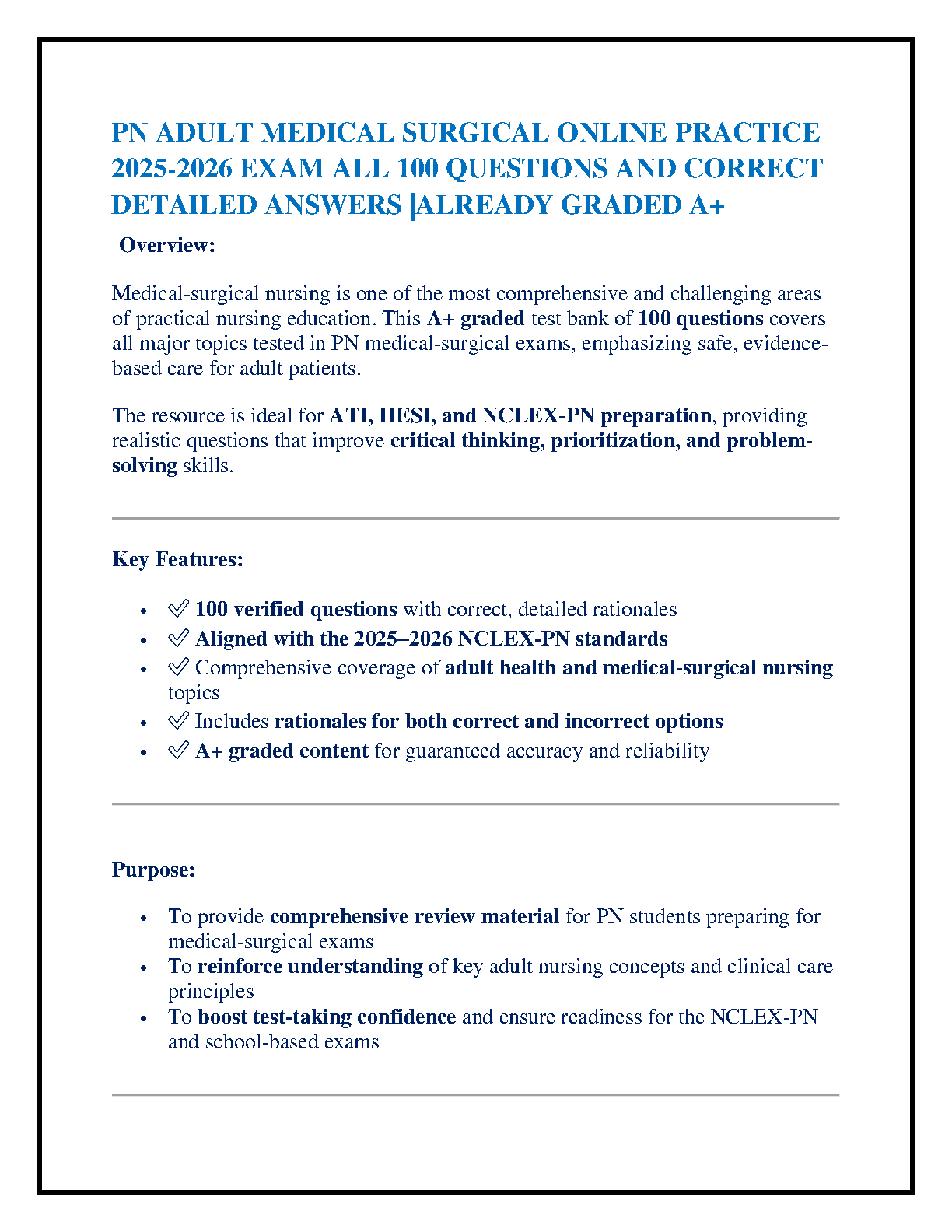 HackedExams is the website to download all resources for students who want to pass their exams on their first attempt. Our website offers all exam materials, including practice questions with answers, test banks, study guides, notes, summaries, and more for nursing, computer science, biology, psychology, law, and others. With resources from popular exam bodies like ATI, AQA, OCR, Edexcel, Comptia, Azure, and more, you'll easily find everything you need to get certified. Avoid resitting exams; trust in HackedExams.com to give you the resources to pass on your first attempt. Get access to exams from 2019 to 2023 and start your path to success today. "Avoid resits, get certified within days, and pass your exams on your first attempt."